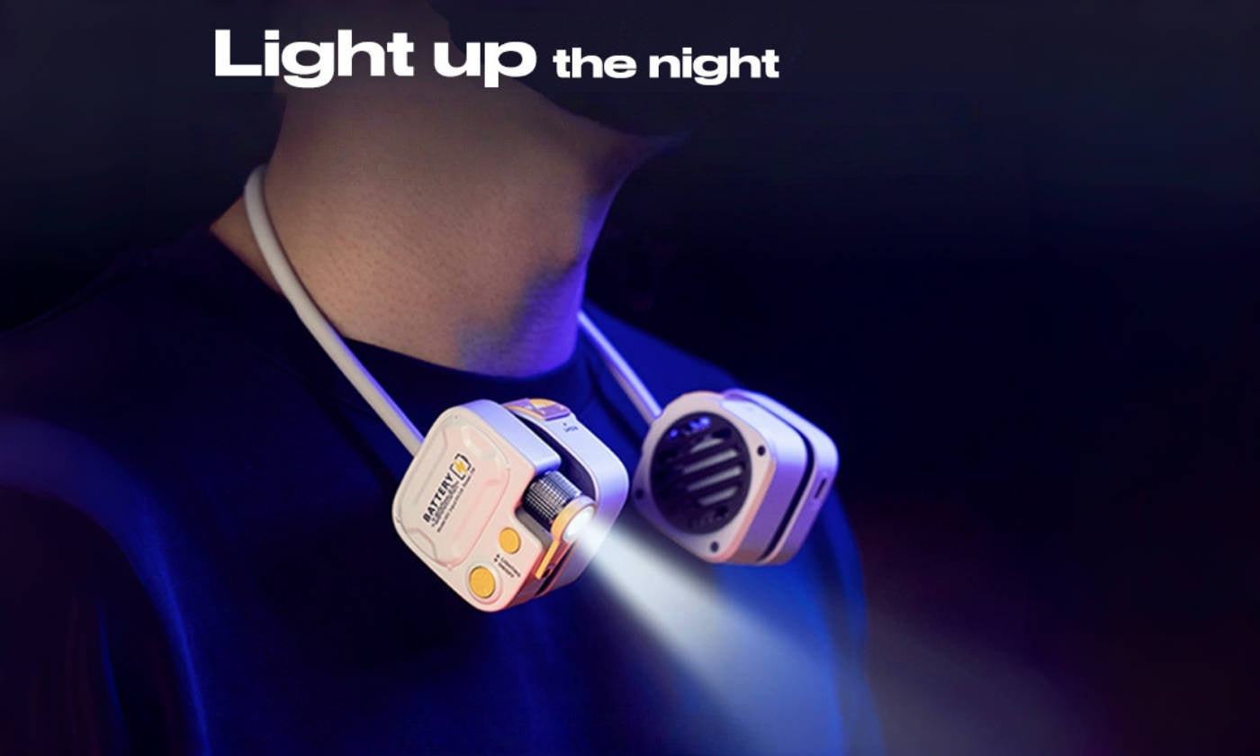 Pocket-size neck fan with a bendable 360° hose and built-in flashlight. Three quiet speeds powered by a 1800mAh battery for 3–6 hours. USB-C charging, safety grille, and a turbine duct for strong, focused airflow—perfect outdoors and on the go.