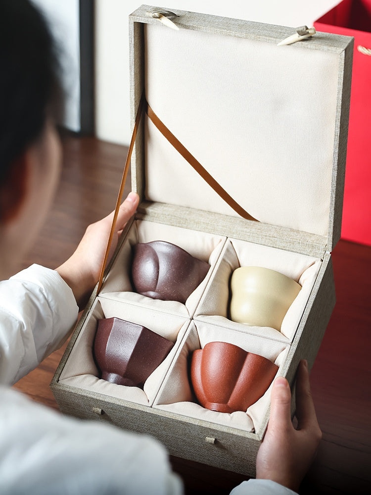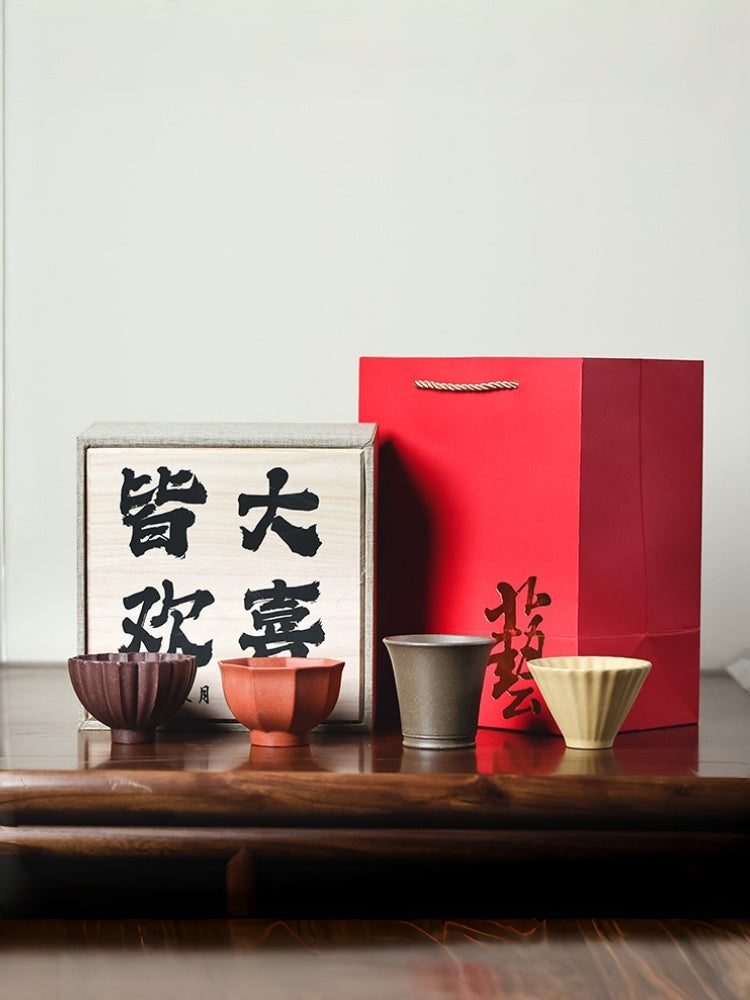 Celebrate Chinese tea culture with the Zisha Chinese Tea Cup Gift Set. Each 160–180 ml master cup is crafted from purple clay and hand-painted with auspicious themes like “Everyone Happy,” “Fu Lu Shou Xi,” and “Peace & Joy.” The zisha body enhances tea aroma while the Guofeng design makes it a meaningful gift for tea lovers, festivals, and business occasions alike.