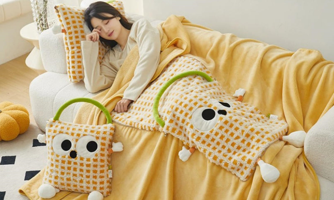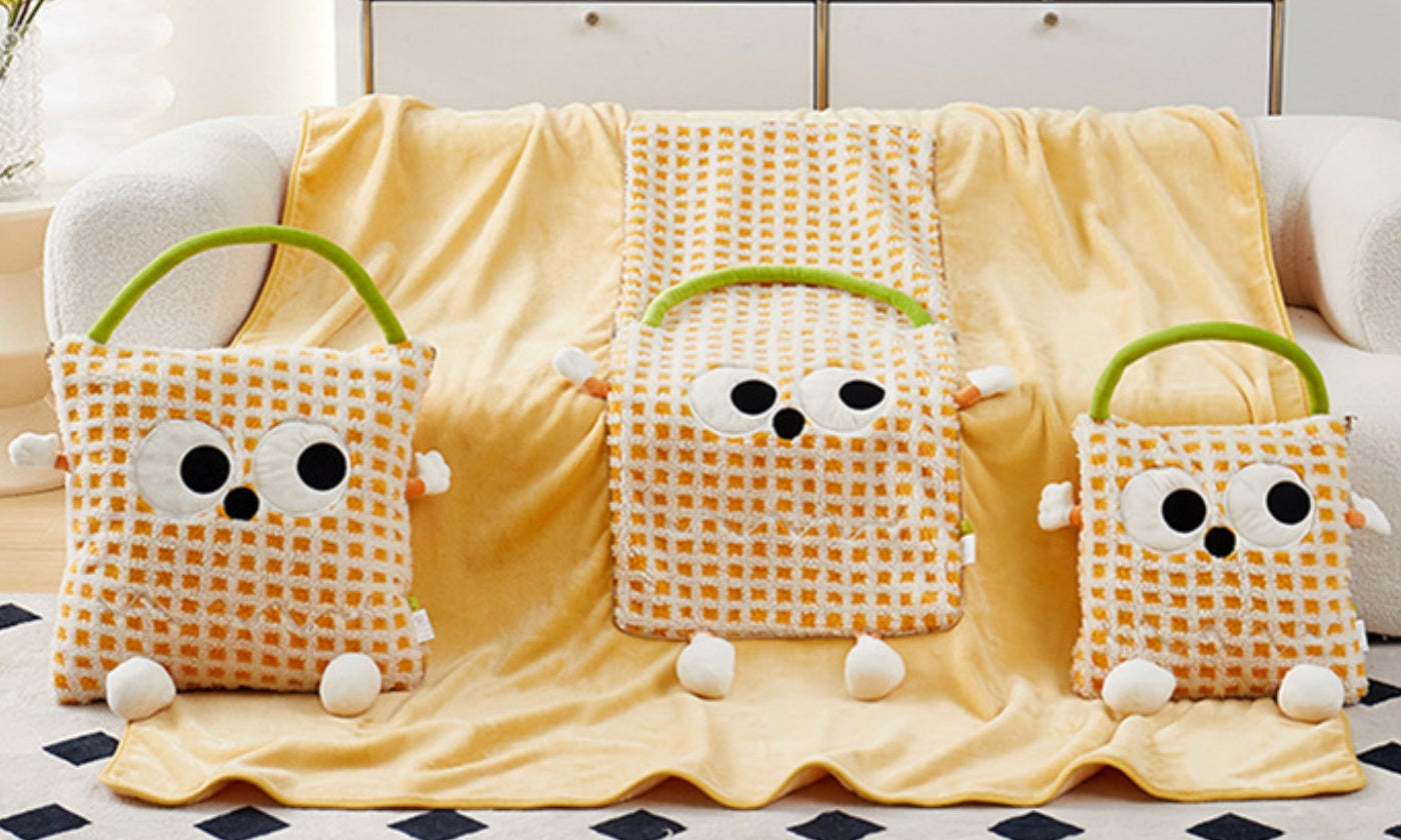 Transforms from a plush cushion into a warm throw in seconds—store compactly on sofa or car, then unfold for naps, AC chills, or travel warmth.