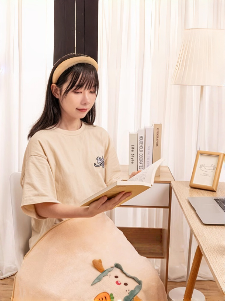Short-pile flannel with dense, soft handfeel keeps you warm at desk, on sofa, or in transit.
